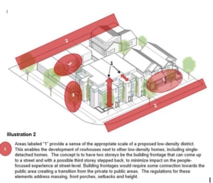 A case in point. Twice in the past week, people from other communities have sent me an email with a scanned copy of a sheet of paper that they found in their mailbox. In one case, the homeowner received a letter asking if they would sell their home so that there could be an amalgamation of properties on their street: a developer wanted to buy some homes in a row so they could maximize the number of units to be built. In another case, all neighbours in an area received a notice that angrily stated, “Our rights are being taken away by blanket rezoning. A builder has just posted notice to develop beside our home…. 16 homes which can be divided into 32 suites on only 2 lots. I’m just learning that due to blanket rezoning, we can’t fight it!”
